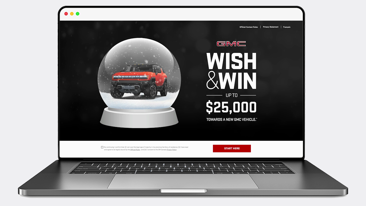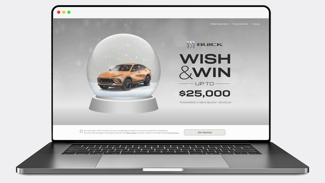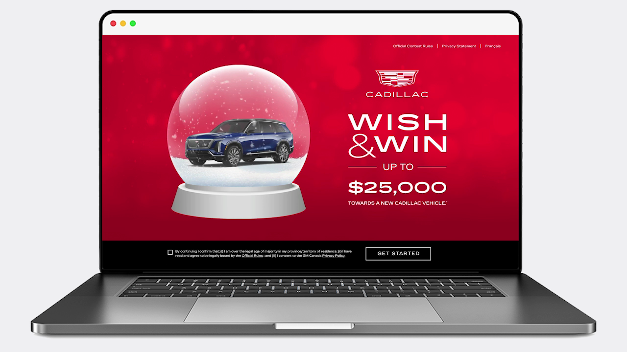 The contest ran across all GM brands—Chevrolet, Buick, GMC, and Cadillac—with each implementation skinned to align with its respective brand's design guidelines while maintaining a cohesive contest experience. The contest was promoted across multiple touchpoints, including brand websites, dealer websites, and social media channels, creating a unified multi-platform experience that maximized reach and engagement during the critical holiday shopping period.