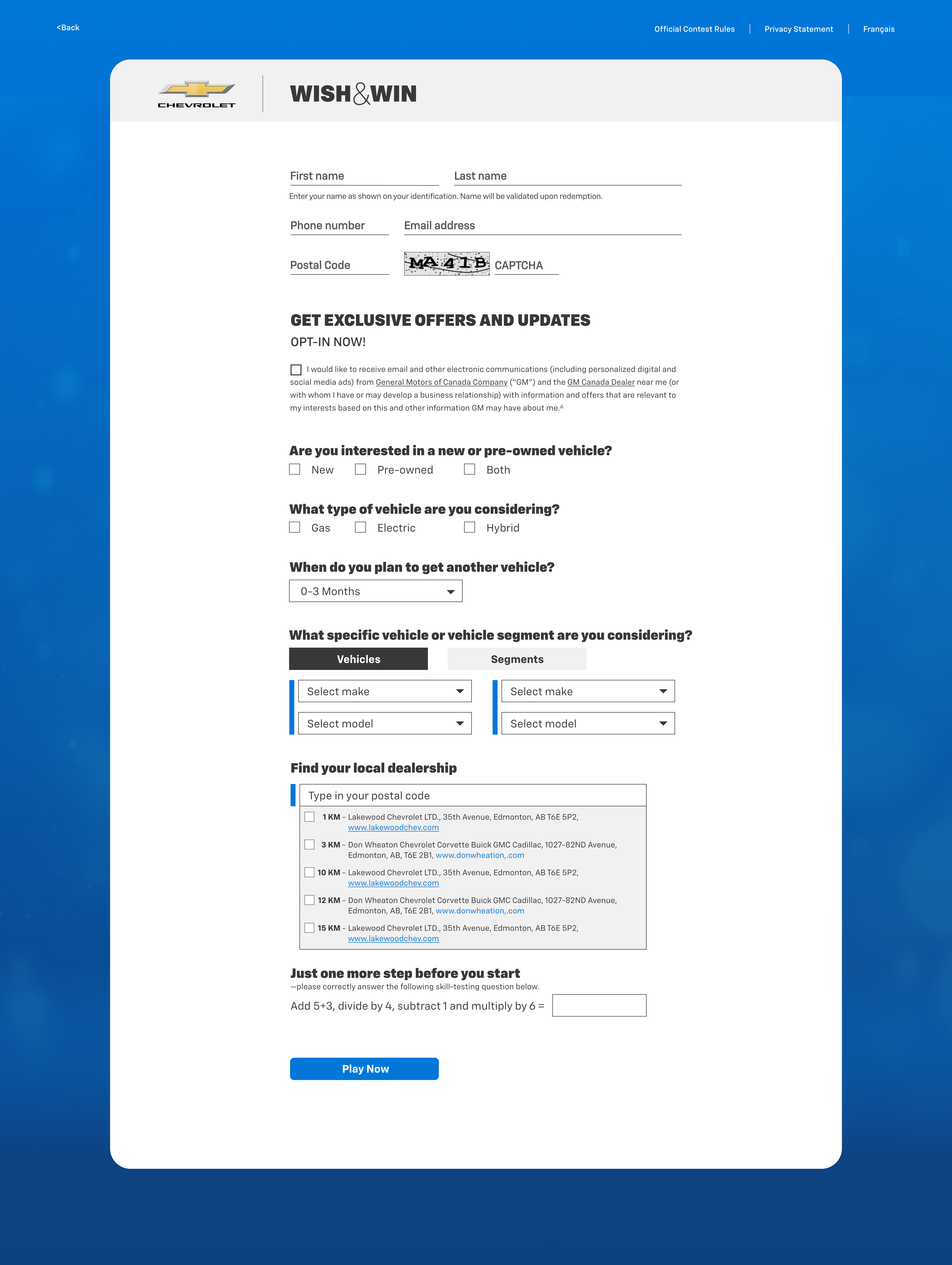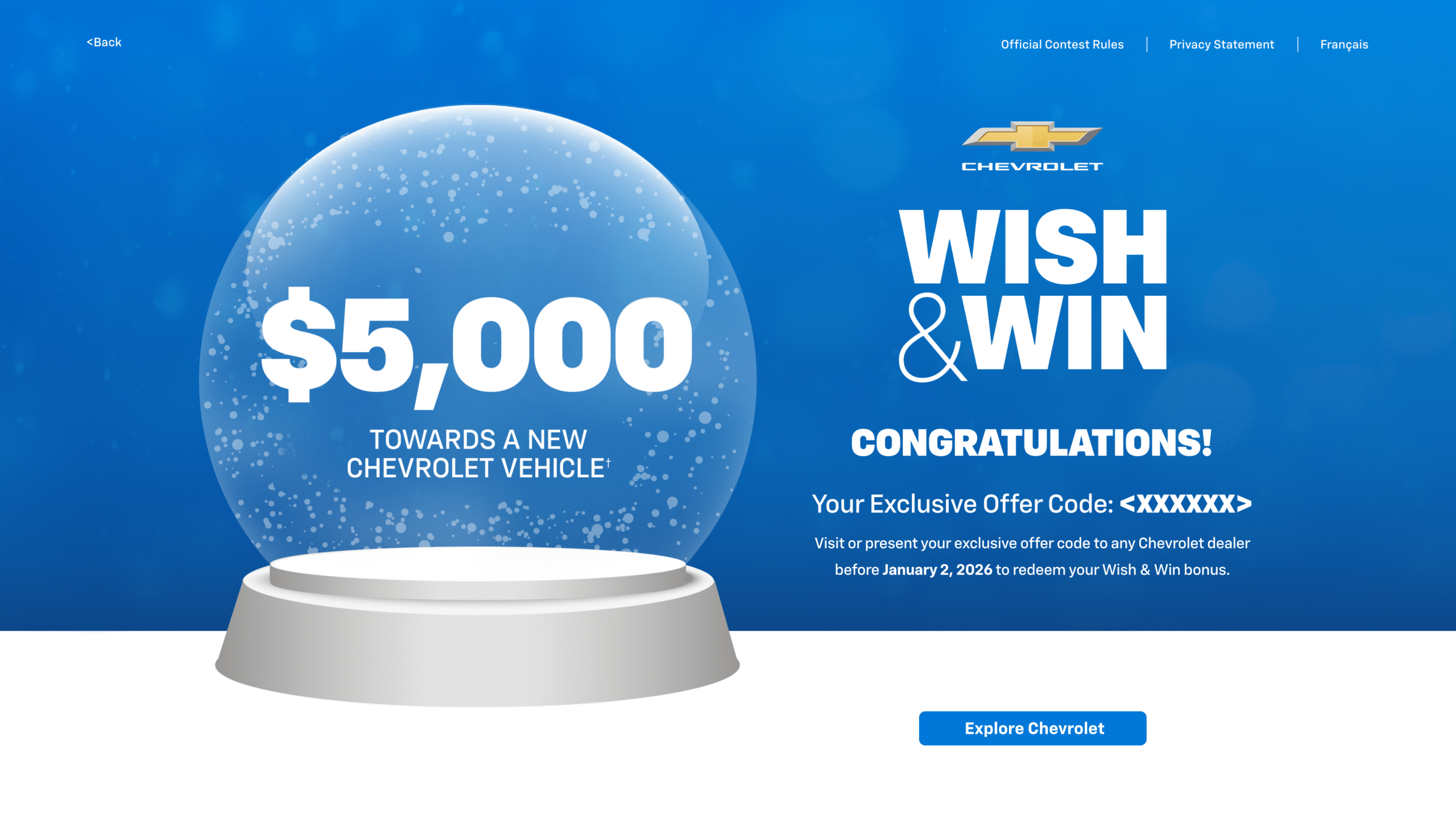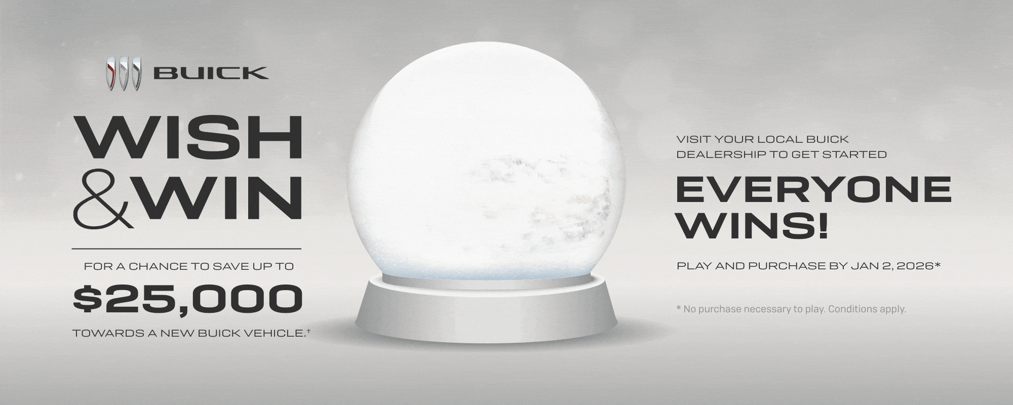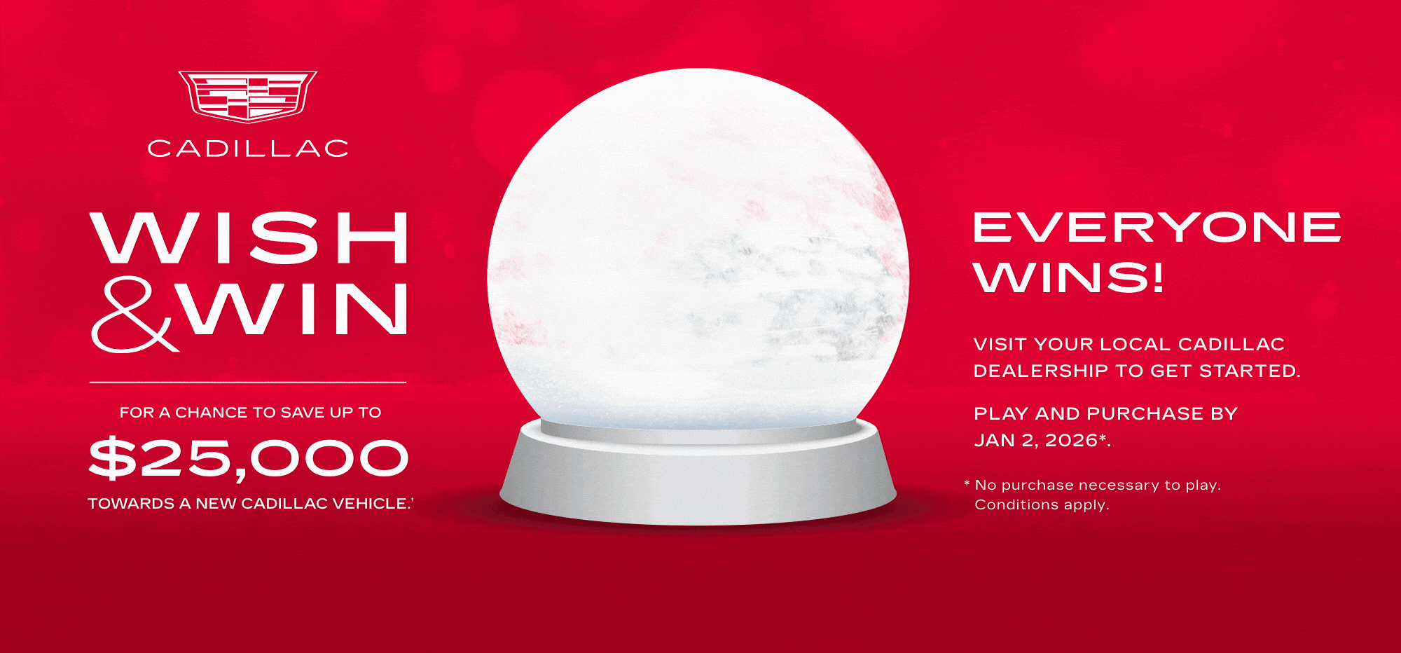Wish & Win was a seasonal contest over the 2025 holiday season designed to drive end-of-year leads through an engaging promotional campaign. Entrants had the opportunity to win cash-value prizes, with a grand prize of $25,000 that could be applied toward the purchase of a new vehicle.